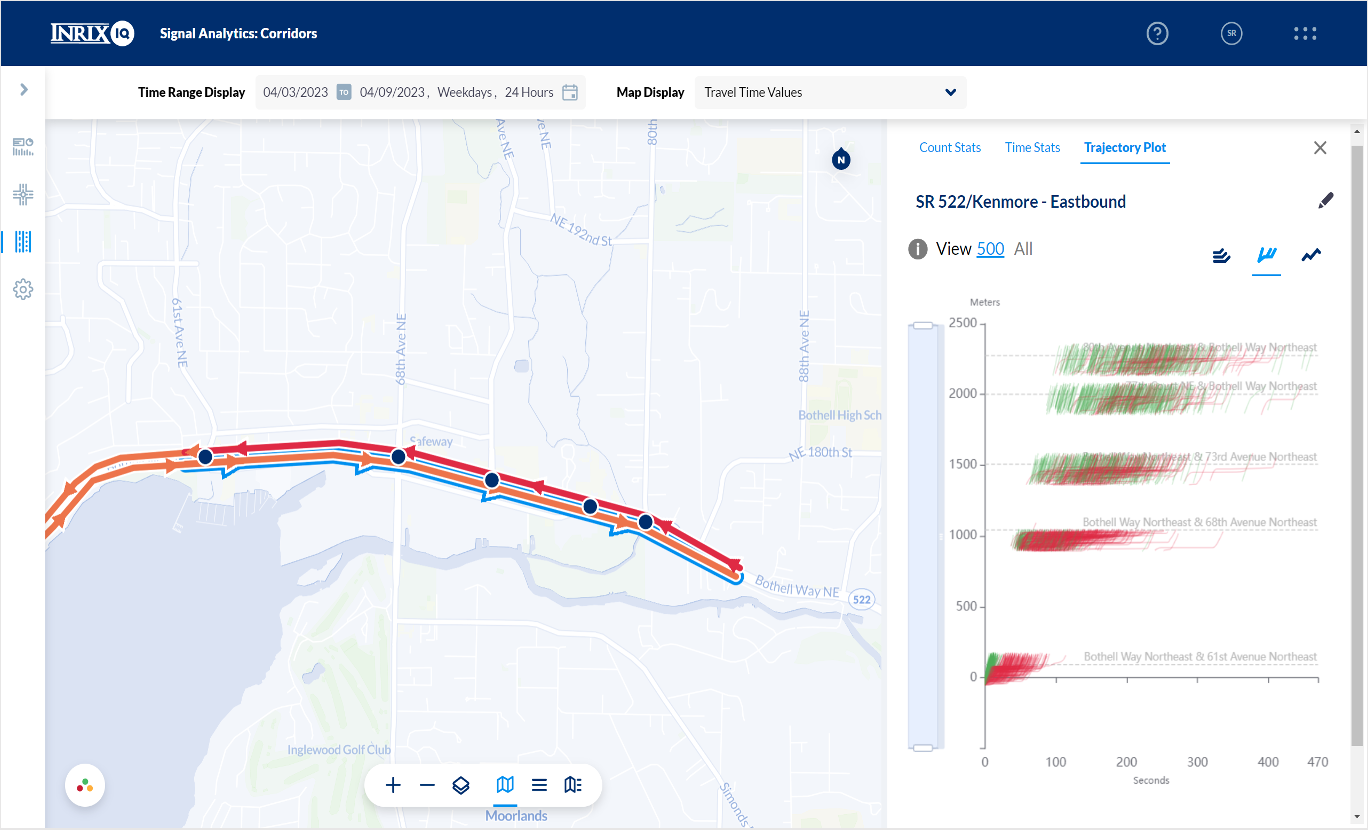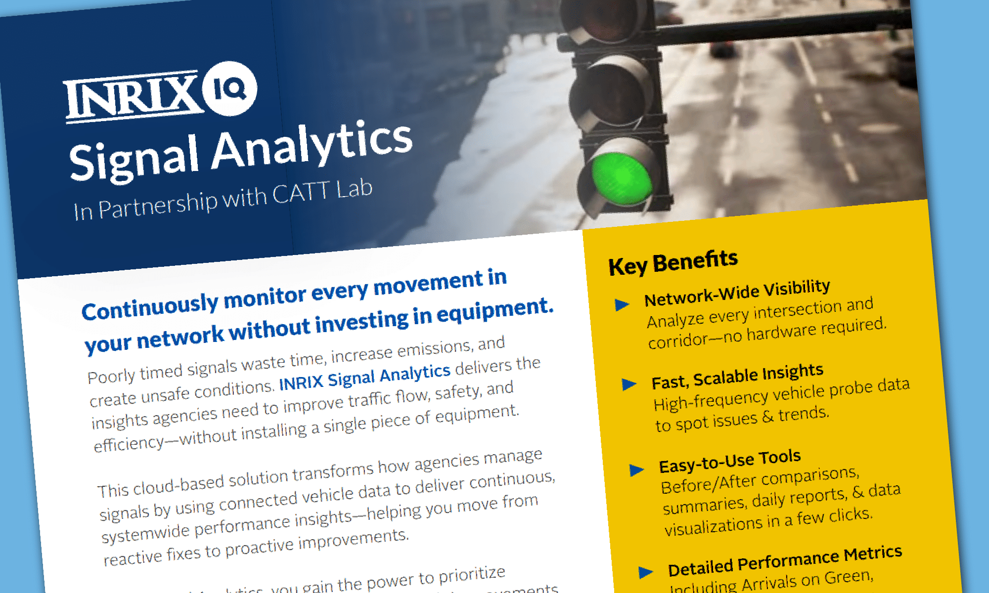 INRIX Signal Analytics is the first cloud-based application that uses big data from connected cars to help traffic professionals identify and understand unnecessary delay at signalized intersections areawide – no hardware or fieldwork required. Our traffic signal software provides valuable mobility insights to enhance urban traffic flow.